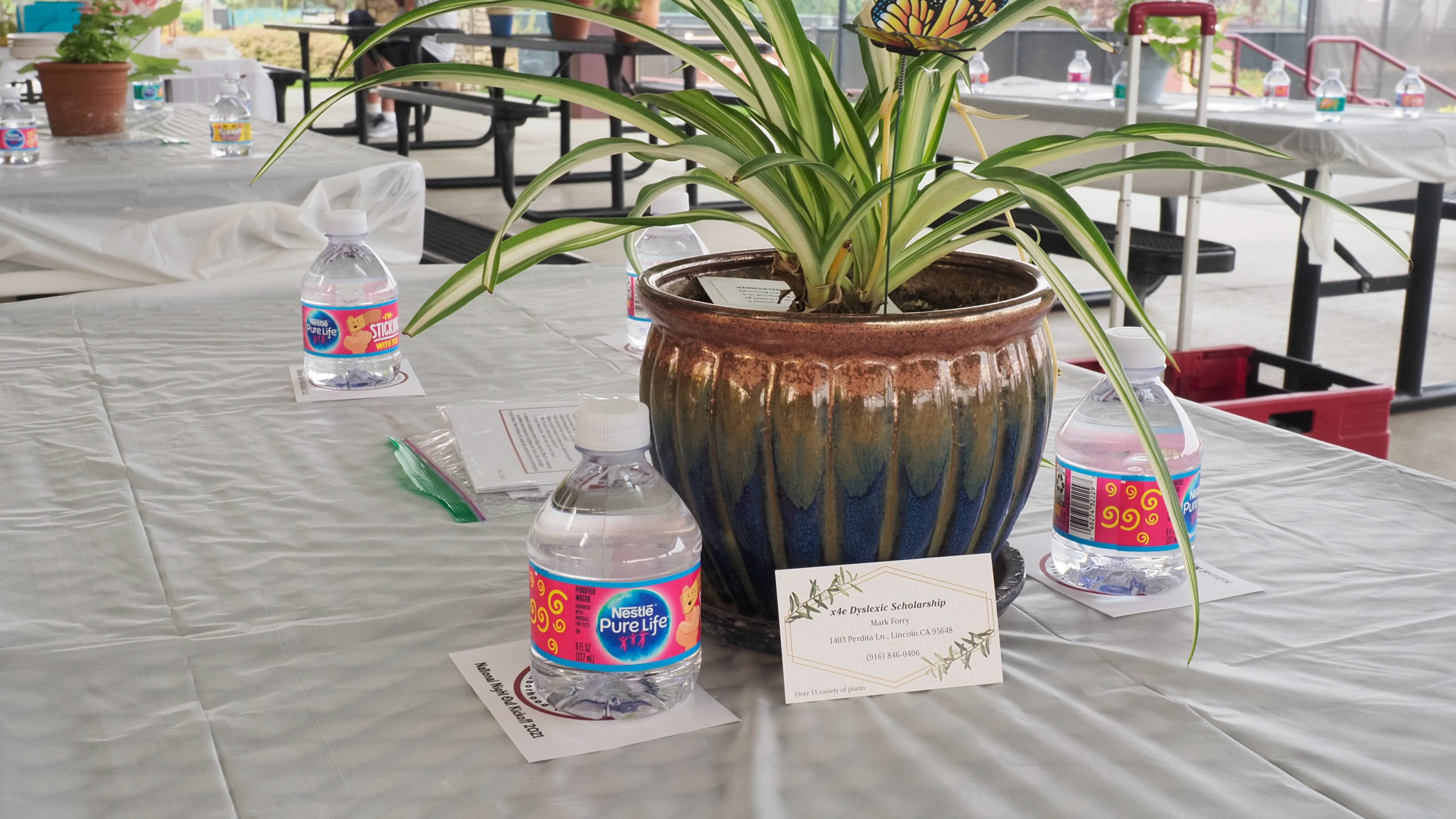 Suzanne Rosevold extends her thanks to: guest speakers Jeri DiFiore and Dianne Kroll who spoke of their experiences in hosting National Night Out events in their neighborhoods, our dedicated event volunteers, Wanda Frederick , Marie Basinger, Dee Fuggiasco, Gerry Bell, Mary Shelton, Dawna Hawksworth, and NW Photographer, Klara Kleman, and a special thank you to Lorraine Immel, Denise Hexom and Mark Forry (c4e Dyslexic Scholarship), for their donation of the plants used as centerpieces and then given to our guests – one from each table.